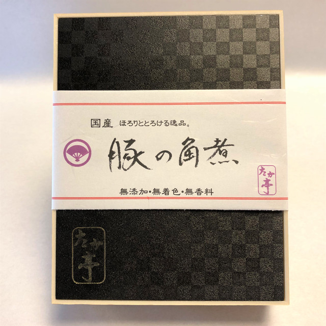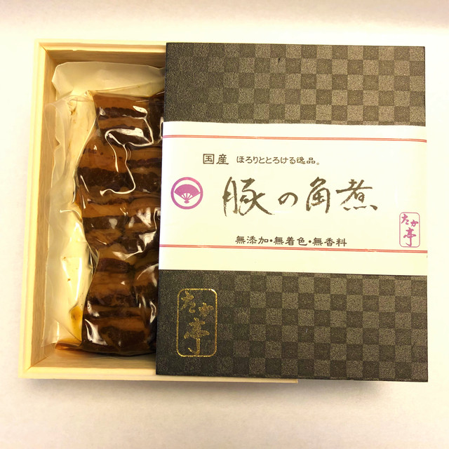原材料名:豚肉(国産)、砂糖、醤油(大豆(遺伝子組み換えでない)・小麦)、清酒、酢、生姜、ねぎ(一部に小麦、大豆、豚肉を含む)