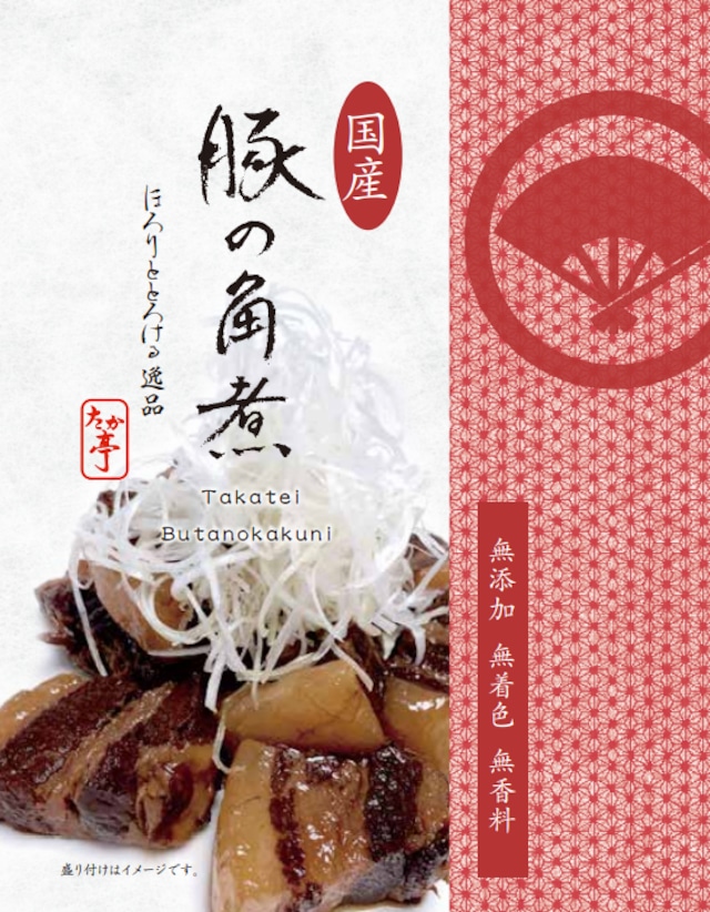 原材料名:豚肉(国産)、砂糖、醤油(大豆(遺伝子組み換えでない)・小麦)、清酒、酢、生姜、ねぎ) (一部に小麦、大豆、豚肉を含む)